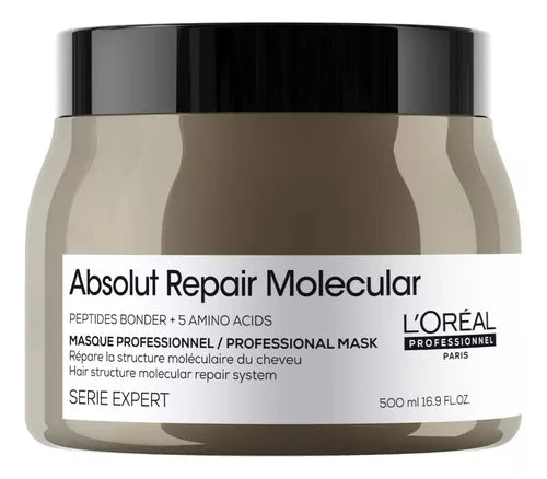 La mascarilla Absolut Repair Molecular de la marca Loreal Professionnel repara y fortalece la fibra...